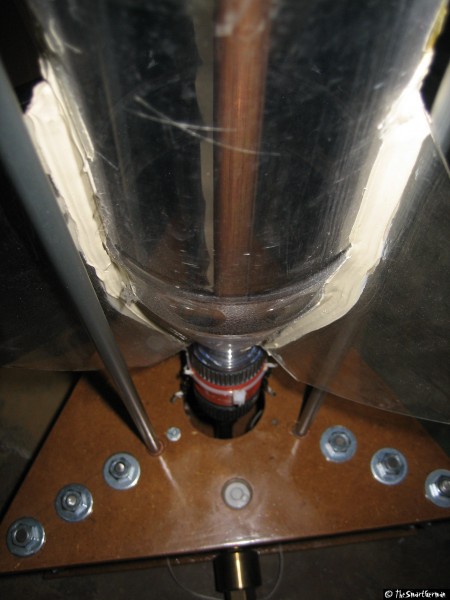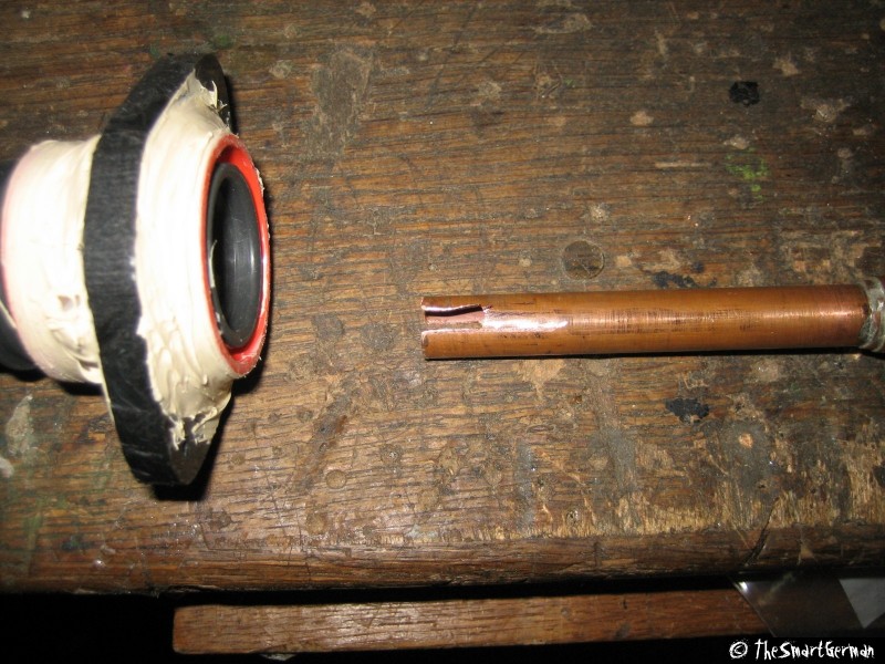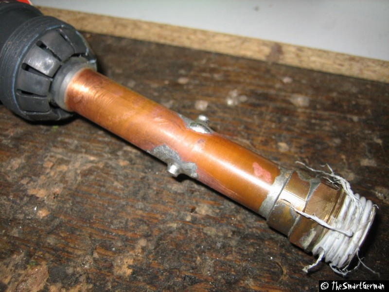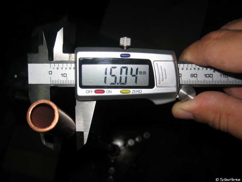 Die Launchtube sollte möglichste den gleichen Durchmesser der Düse besitzen. Um die maximale Wirkung zu erreichen. Bei der Verwendung einer Profi Düse, ist der optimale Durchmesser der LT somit 15mm. Hierbei muss jedoch die Düse mit einer Reibaale minimal aufgeweitet werden. In die Lunchtube wird ein Stück Kupferrohr mit einem geringerem Durchmesser gelötet, hierbei muss jedoch einwenig getrickst werden. Da der Innendruchmesser einer 15mm Leitung 13mm beträgt. Der nächst erhältliche Außendruchmesser jedoch 12mm ist. Ein Streifen von 0,5mm Kupferblech muss somit in den Spalt eingefügt und dann alles zusammen verlötet werden. Nun kann die LT in die Kupplung gesteckt werden. Beim Start wird die Rakete über die LT auf die Rampe geschoben.