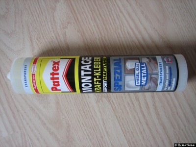Patex Spielekleber - Dieser Kleber ist dazu gedacht Spiegel auf harte Untergründe zu kleben. Im ausgehärteten Zustand verhält er sich wie Silikon auch die Verarbeitung ist identisch. Mit diesem Kleber lassen sich Finnen sehr gut verkleben. Die Verklebung ist sehr elastisch und hält sehr gut.