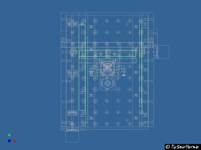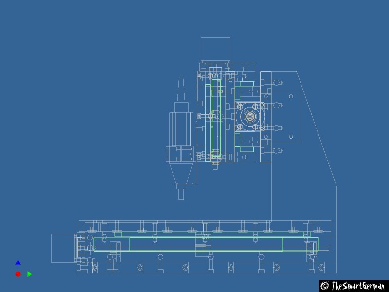 Sie so oft im Leben, ist gute Planung das A und O. Da das Bauen einer solchen CNC-Fräse einiges an Vorbereitung erfordert, wenn diese gut werden soll, wurde die gesamte CNC-Fräse erst als 3D-Modell entworfen. Somit konnten viele Probleme schon während der Planungsphase gelöst werden. So bietet sich das Drahtmodell an die Flucht der einzelnen Achsen zu prüfen. Nachdem alles modelliert ist, werden einfach 2D-Zeichnungen erstellt, mit denen dann die Fertigung der einzelnen Teile erfolgen kann.
